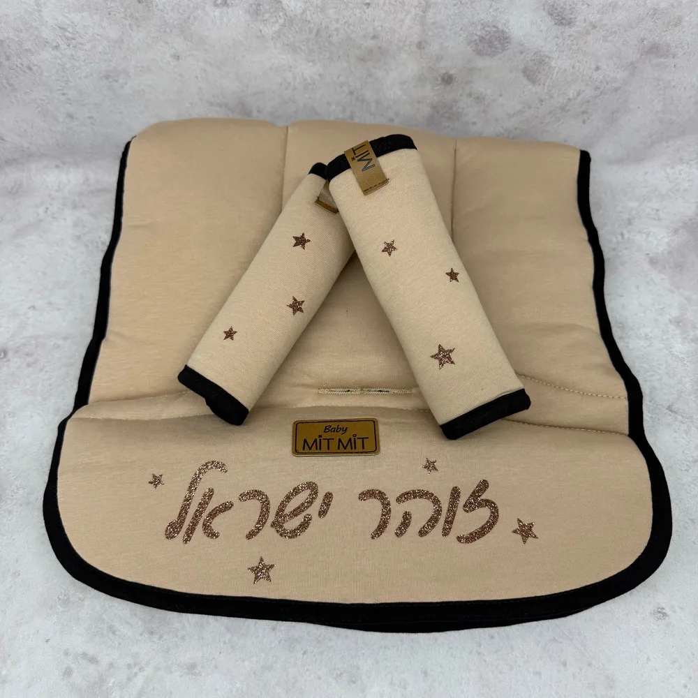 פרטים: סט מפנק לעגלה של BABY MIT MIT משדרג את עגלת התינוק ומעניק לה מראה מודרני, ייחודי ומלא בסטייל! ריפודית וחבקים לעגלה בעיצוב ייחודי ופונקציונאלי מעניק תחושה נעימה ומרופדת לתינוק בכל עונות השנה! עשוי בד ג'רסי 100% כותנה סרוקה, נושמת ונעימה. ריפודית וחבקים המילוי הולופייבר נעים ורך מגנים ושומרים על עור התינוק ועל נקיון העגלה. לריפודית ישנם חמישה פתחים אוניברסאליים, מתאימים לרוב סוגי העגלות, המקנים גישה נוחה לרצועות הבטיחות. בחלק העליון ישנה גומייה הנתפסת לעגלה ומונעת החלקה. חבקים מתחברים לרצועות הבטיחות של העגלה בעזרת סקוטש ומתאימים לרצועות ברוחב עד 4 ס"מ. סט לעגלה של בייבי מיטמיט מתנת לידה מושלמת שכל יולדת תשמח לקבל!