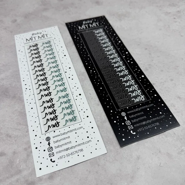 מדבקות ויניל מעוצבות של המותג BABYMITMIT, כוללות שם הילד בכל שפה- לסימון מוצצים. דף הכולל 34 יחידות מדבקות עמידות במים, בסטרליזציה ומים רותחים.