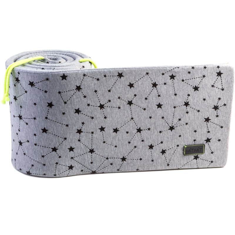 מגן ראש לעריסה ולמיטת תינוק-אפור כוכבים (צהוב). ניתן להוסיף שם