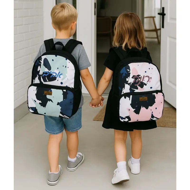 תיק גן ומעון כולל הדפסת שם הילד/ה- זריקת צבע כחול