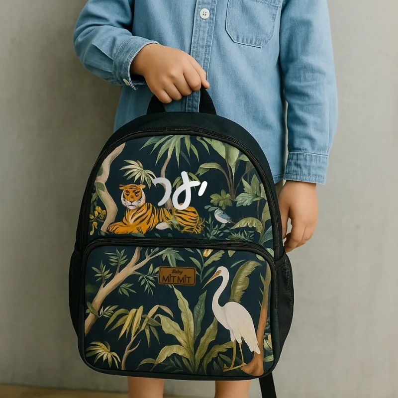 התיק מודפס בגרפיקה מקורית של ג'ונגל . לתיק כיס חיצוני קדמי, תא גדול עם חציצה פנימית ובצידי התיק שני תאים לבקבוקים.
