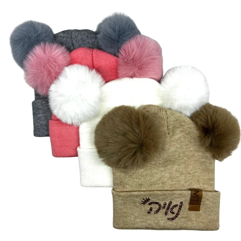 כובע פונפונים- מבחר צבעים. כולל הדפסת שם הבייבי במתנה