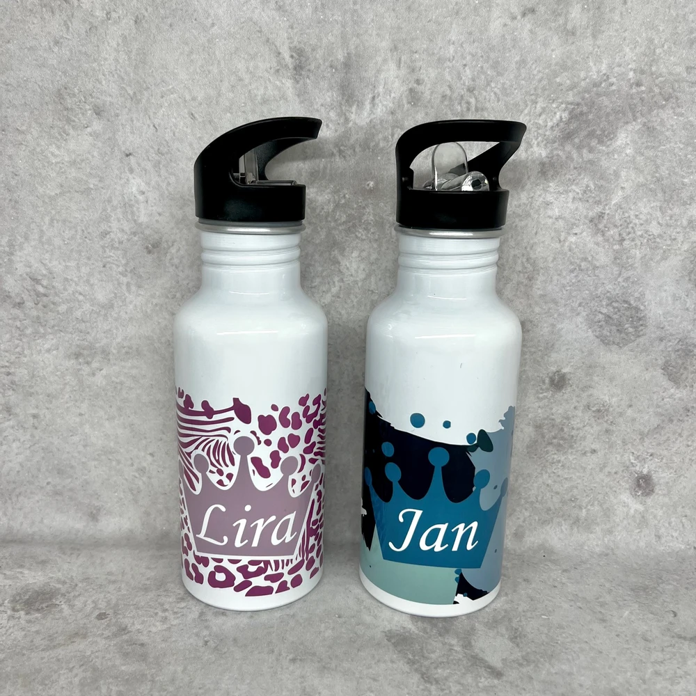 בקבוק לבן מעוצב לגן- בהדפסה שם הילד/ה