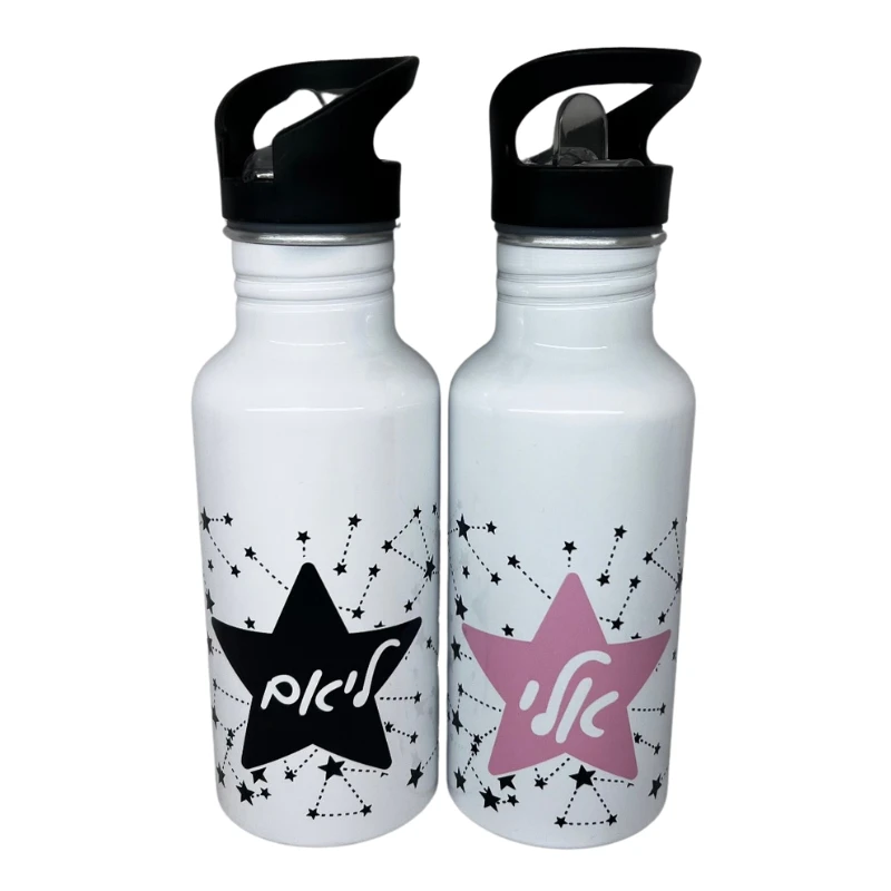 פרטים: בקבוק שתיה לגן של BABYMIT MIT מתאים למעון,לגן ולבית ספר. הדפסת שם הילד בכל שפה.